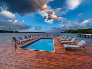 Take a look at the communal outdoor area. In the first few photo's you can see a red-roofed gazebo that has an outdoor grill big enough to cook for your whole party, and it has bench seating all the way around. In the next few photo's you can see a couple of comfortable deck chairs that are great for sipping your morning coffee in. Then there is the large blue outdoor couch that is big enough for everyone. Finally, you get to see the incredible pool on the water that is surrounded by lounge chairs for lying in the sun or reading by the water. Overall, we have a great, large communal space for everyone to enjoy!
